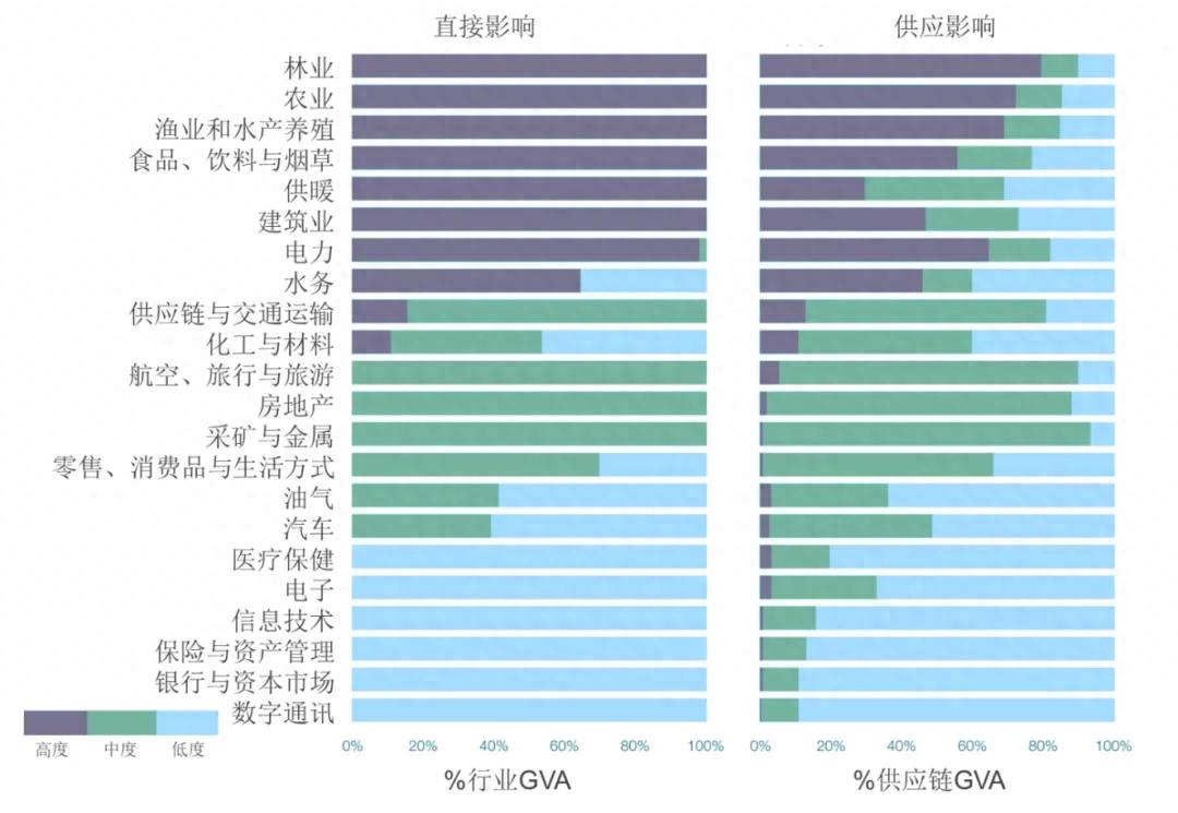 图1:各行业中具有高、中、低自然依赖度的